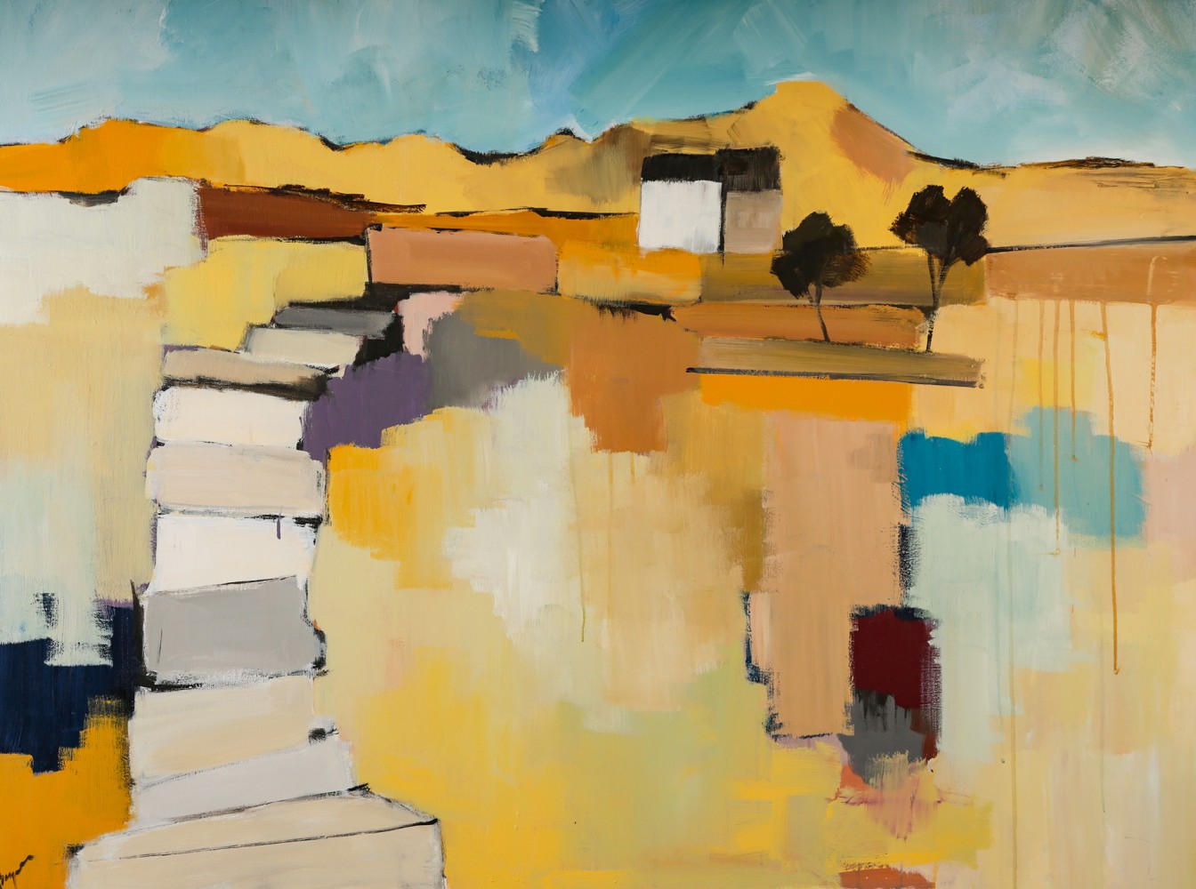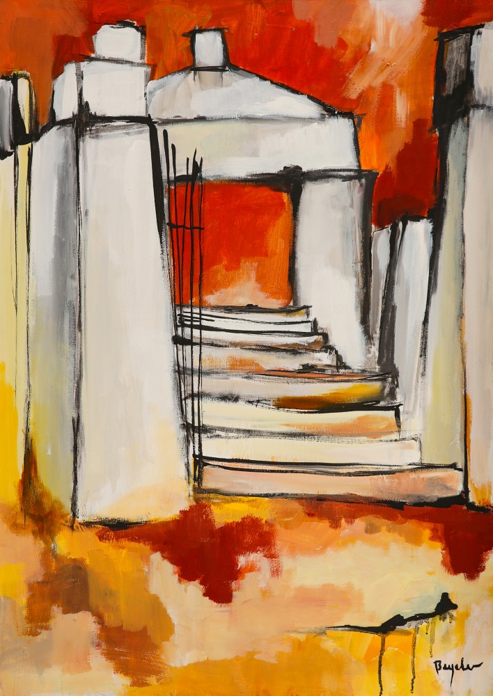 Bis vor ein paar Jahren malte Paula Brinkhaus vorwiegend Landschaften. Häuser mit Bäumen und Hügeln. Heute bevorzugt sie menschliche Silhouetten, Gesichter und Ausdrücke.